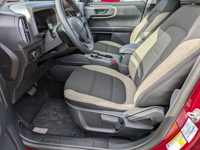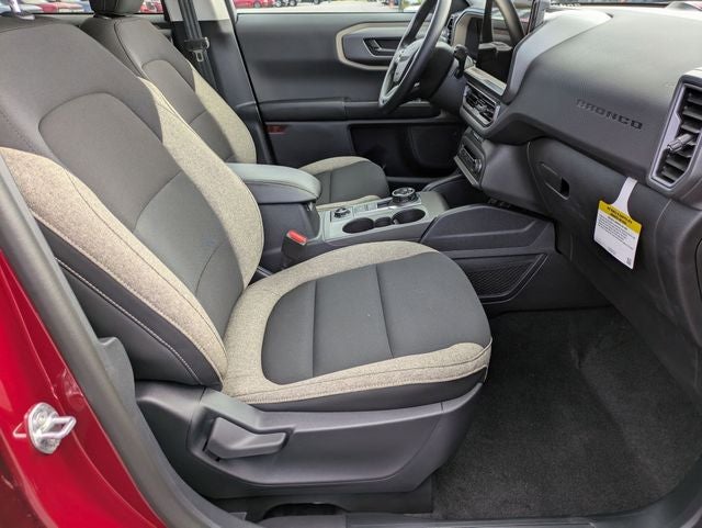 This Bronco Sport Big Bend is nicely equipped with Equipment Group 200A, 4-Wheel Disc Brakes, 6 Speakers, ABS brakes, Air Conditioning, Alloy wheels, AM/FM radio: SiriusXM, AM/FM Stereo, Auto High-beam Headlights, Automatic temperature control, Brake assist, Cloth w/Easy-to-Clean Front Bucket Seats, Compass, Delay-off headlights, Driver door bin, Driver vanity mirror, Dual front impact airbags, Dual front side impact airbags, Electronic Stability Control, Emergency communication system: SYNC 4 911 Assist, Four wheel independent suspension, Front anti-roll bar, Front Bucket Seats, Front Center Armrest, Front License Plate Bracket, Front reading lights, Fully automatic headlights, Heated door mirrors, Illuminated entry, Knee airbag, Low tire pressure warning, Occupant sensing airbag, Outside temperature display, Overhead airbag, Overhead console, Panic alarm, Passenger door bin, Passenger vanity mirror, Power door mirrors, Power steering, Power windows, Radio data system, Rear anti-roll bar, Rear Parking Sensors, Rear reading lights, Rear seat center armrest, Rear window defroster, Rear window wiper, Remote keyless entry, Security system, SiriusXM, Speed control, Speed-sensing steering, Speed-Sensitive Wipers, Split folding rear seat, Steering wheel mounted audio controls, SYNC 4 w/Enhanced Voice Recognition, Tachometer, Telescoping steering wheel, Tilt steering wheel, Traction control, Trip computer, Variably intermittent wipers, and Wheels: 17 Carbonized Gray-Painted Aluminum.
