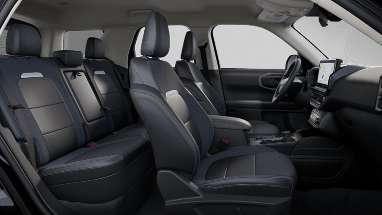 This Bronco Sport Outer Banks is nicely equipped with Equipment Group 300A, Outer Banks Tech Package+ (B&O Sound System by Bang & Olufsen, Connected Navigation, and HD Radio), 360-Degree Camera w/Trail & Split View, 4-Wheel Disc Brakes, 6 Speakers, ABS brakes, Air Conditioning, Alloy wheels, AM/FM radio: SiriusXM, AM/FM Stereo, Auto High-beam Headlights, Auto-dimming Rear-View mirror, Automatic temperature control, Brake assist, Compass, Delay-off headlights, Driver door bin, Driver vanity mirror, Dual front impact airbags, Dual front side impact airbags, Electronic Stability Control, Emergency communication system: SYNC 4 911 Assist, Four wheel independent suspension, Front anti-roll bar, Front Bucket Seats, Front Center Armrest, Front Driver/Passenger Seat Back Map Pockets, Front dual zone A/C, Front fog lights, Front License Plate Bracket, Front Parking Sensors, Front reading lights, Fully automatic headlights, Garage door transmitter, Heated door mirrors, Heated front seats, Heated steering wheel, Illuminated entry, Knee airbag, Low tire pressure warning, Memory seat, Occupant sensing airbag, Outside temperature display, Overhead airbag, Overhead console, Panic alarm, Passenger door bin, Passenger vanity mirror, Power door mirrors, Power driver seat, Power passenger seat, Power steering, Power windows, Premium Trimmed Front Bucket Seats w/Ebony/Roast, Premium Trimmed Front Bucket Seats w/Platinum Blue, Radio data system, Rain sensing wipers, Rear anti-roll bar, Rear Parking Sensors, Rear reading lights, Rear seat center armrest, Rear window defroster, Rear window wiper, Remote keyless entry, Reverse Brake Assist, Security system, SiriusXM, Speed control, Speed-sensing steering, Speed-Sensitive Wipers, Split folding rear seat, Steering wheel mounted audio controls, SYNC 4 w/Enhanced Voice Recognition, Tachometer, Telescoping steering wheel, Tilt steering wheel, Traction control, Trip computer, Variably intermittent wipers, and Wheels: 18 Ebony Black-Painted Aluminum.