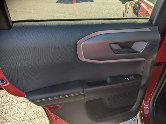This Bronco Sport Outer Banks is nicely equipped with Equipment Group 300A, Outer Banks Tech Package+ (B&O Sound System by Bang & Olufsen, Connected Navigation, and HD Radio), 360-Degree Camera w/Trail & Split View, 4-Wheel Disc Brakes, 6 Speakers, ABS brakes, Air Conditioning, Alloy wheels, AM/FM radio: SiriusXM, AM/FM Stereo, Auto High-beam Headlights, Auto-dimming Rear-View mirror, Automatic temperature control, Brake assist, Compass, Delay-off headlights, Driver door bin, Driver vanity mirror, Dual front impact airbags, Dual front side impact airbags, Electronic Stability Control, Emergency communication system: SYNC 4 911 Assist, Four wheel independent suspension, Front anti-roll bar, Front Bucket Seats, Front Center Armrest, Front Driver/Passenger Seat Back Map Pockets, Front dual zone A/C, Front fog lights, Front License Plate Bracket, Front Parking Sensors, Front reading lights, Fully automatic headlights, Garage door transmitter, Heated door mirrors, Heated front seats, Heated steering wheel, Illuminated entry, Knee airbag, Low tire pressure warning, Memory seat, Occupant sensing airbag, Outside temperature display, Overhead airbag, Overhead console, Panic alarm, Passenger door bin, Passenger vanity mirror, Power door mirrors, Power driver seat, Power passenger seat, Power steering, Power windows, Premium Trimmed Front Bucket Seats w/Ebony/Roast, Premium Trimmed Front Bucket Seats w/Platinum Blue, Radio data system, Rain sensing wipers, Rear anti-roll bar, Rear Parking Sensors, Rear reading lights, Rear seat center armrest, Rear window defroster, Rear window wiper, Remote keyless entry, Reverse Brake Assist, Security system, SiriusXM, Speed control, Speed-sensing steering, Speed-Sensitive Wipers, Split folding rear seat, Steering wheel mounted audio controls, SYNC 4 w/Enhanced Voice Recognition, Tachometer, Telescoping steering wheel, Tilt steering wheel, Traction control, Trip computer, Variably intermittent wipers, and Wheels: 18 Ebony Black-Painted Aluminum.