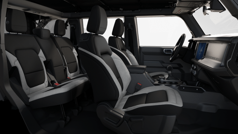 This Bronco is nicely equipped with Equipment Group 101A, 4-Wheel Disc Brakes, 4.46 Axle Ratio, 7 Speakers, ABS brakes, Air Conditioning, AM/FM radio: SiriusXM with 360L, AM/FM Stereo, Auto High-beam Headlights, Brake assist, Cloth Bucket Seats, Compass, Delay-off headlights, Driver door bin, Driver vanity mirror, Dual front impact airbags, Dual front side impact airbags, Electronic Stability Control, Emergency communication system: 911 Assist, Exterior Parking Camera Rear, Front anti-roll bar, Front Bucket Seats, Front Center Armrest, Front License Plate Bracket, Front reading lights, Front wheel independent suspension, Fully automatic headlights, Heated door mirrors, Illuminated entry, Integrated roll-over protection, Low tire pressure warning, Occupant sensing airbag, Outside temperature display, Overhead airbag, Overhead console, Panic alarm, Passenger door bin, Passenger vanity mirror, Power door mirrors, Power steering, Power windows, Radio data system, Remote keyless entry, Security system, SiriusXM w/360L, Speed control, Split folding rear seat, Steering wheel mounted audio controls, SYNC 4, Tachometer, Telescoping steering wheel, Tilt steering wheel, Traction control, Trip computer, Variably intermittent wipers, and Wheels: 16 Bright Polished Silver-Painted Steel Price does not include dealer-installed equipment. Price(s) include(s) all costs to be paid by a consumer, except for licensing costs, registration fees, $799 administrative fees, taxes, and $798 Triton VIP Protection Plan.