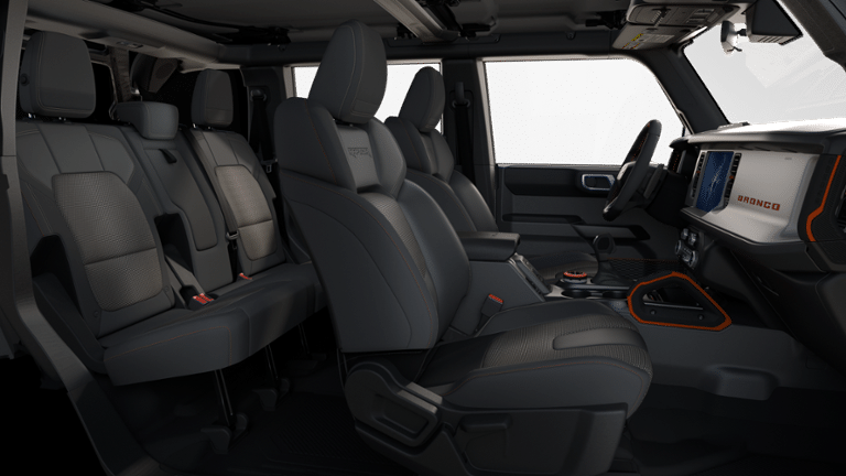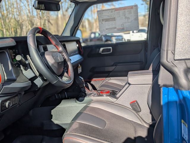 This Bronco Raptor is nicely equipped with Equipment Group 374A Lux Package, 12 Speakers, 4-Wheel Disc Brakes, ABS brakes, Air Conditioning, Alloy wheels, AM/FM radio: SiriusXM with 360L, Auto High-beam Headlights, Auto-dimming Rear-View mirror, Automatic temperature control, Body Color-Painted Hard Top, Brake assist, Compass, Connected Navigation, Convertible HardTop, Convertible roof lining, Delay-off headlights, Driver door bin, Driver vanity mirror, Dual front impact airbags, Dual front side impact airbags, Electronic Stability Control, Emergency communication system: 911 Assist, Exterior Parking Camera Rear, Front anti-roll bar, Front Bucket Seats, Front Center Armrest, Front dual zone A/C, Front fog lights, Front License Plate Bracket, Front reading lights, Front wheel independent suspension, Fully automatic headlights, Garage door transmitter, Glass rear window, Hard Top Sound Deadening Headliner, Heated door mirrors, Heated front seats, Heated steering wheel, Illuminated entry, Integrated roll-over protection, Internet access capable: FordPass Connect, Leather Shift Knob, Leather-Trimmed/Vinyl Bucket Seats, Low Gloss Black High Coverage Fender Flares, Low tire pressure warning, Marine Grade Vinyl Bucket Seats, Navigation system: Connected Navigation, New Feature 2, New Feature 3, New Feature 4, New Feature 5, New Feature 6, Occupant sensing airbag, Outside temperature display, Overhead airbag, Overhead console, Panic alarm, Passenger door bin, Passenger vanity mirror, Power door mirrors, Power steering, Power windows, Radio data system, Radio: B&O Sound System by Bang & Olufsen, Rear anti-roll bar, Rear seat center armrest, Rear window defroster, Rear window wiper, Rear-Window Defroster & Washer, Remote keyless entry, Security system, SiriusXM w/360L, Speed control, Split folding rear seat, Steering wheel mounted audio controls, SYNC 4, Tachometer, Telescoping steering wheel, Tilt steering wheel, Traction control, Trip computer, Turn signal indicator mirrors, Variably intermittent wipers, Voltmeter, and Wheels: 17 Black High Gloss-Painted Aluminum Price does not include dealer-installed equipment. Price(s) include(s) all costs to be paid by a consumer, except for licensing costs, registration fees, $799 administrative fees, taxes, and $798 Triton VIP Protection Plan.