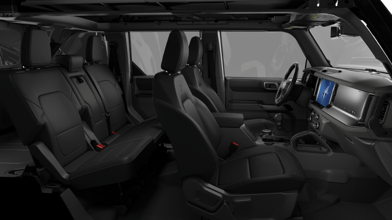 This Bronco Outer Banks Advanced is nicely equipped with Equipment Group 312A Mid Package (18 Bright Machined Aluminum Wheels, 3.73 Axle Ratio, AM/FM Stereo, Connected Navigation, Heated Leather-Trimmed/Vinyl Bucket Seats, SiriusXM with 360L, and SYNC 4), Ford Connectivity Package (1-Year Included), 4-Wheel Disc Brakes, 7 Speakers, ABS brakes, Air Conditioning, Alloy wheels, AM/FM radio: SiriusXM with 360L, Auto High-beam Headlights, Auto-dimming Rear-View mirror, Automatic temperature control, Brake assist, Compass, Delay-off headlights, Driver door bin, Driver vanity mirror, Dual front impact airbags, Dual front side impact airbags, Electronic Stability Control, Emergency communication system: 911 Assist, Exterior Parking Camera Rear, Front anti-roll bar, Front Bucket Seats, Front Center Armrest, Front dual zone A/C, Front fog lights, Front License Plate Bracket, Front reading lights, Front wheel independent suspension, Fully automatic headlights, Hard Top Sound Deadening Headliner, Heated door mirrors, Heated front seats, Heated steering wheel, Illuminated entry, Integrated roll-over protection, Leather Shift Knob, Low tire pressure warning, Navigation system: Connected Navigation, New Feature 2, New Feature 3, New Feature 4, New Feature 5, New Feature 6, Occupant sensing airbag, Outside temperature display, Overhead airbag, Overhead console, Panic alarm, Passenger door bin, Passenger vanity mirror, Power door mirrors, Power driver seat, Power passenger seat, Power steering, Power windows, Radio data system, Rear seat center armrest, Rear-Window Defroster and Washer, Remote keyless entry, Security system, Shadow Black-Painted Hard Top, Speed control, Split folding rear seat, Steering wheel mounted audio controls, Tachometer, Telescoping steering wheel, Tilt steering wheel, Traction control, Trip computer, Variably intermittent wipers, and Voltmeter Price does not include dealer-installed equipment. Price(s) include(s) all costs to be paid by a consumer, except for licensing costs, registration fees, $799 administrative fees, taxes, and $798 Triton VIP Protection Plan.