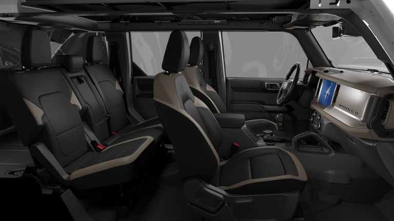 This Bronco Outer Banks Advanced is nicely equipped with Equipment Group 312A Mid Package (18 Bright Machined Aluminum Wheels, 3.73 Axle Ratio, AM/FM Stereo, Connected Navigation, Heated Leather-Trimmed/Vinyl Bucket Seats, SiriusXM with 360L, and SYNC 4), Ford Connectivity Package (1-Year Included), 4-Wheel Disc Brakes, 7 Speakers, ABS brakes, Air Conditioning, Alloy wheels, AM/FM radio: SiriusXM with 360L, Auto High-beam Headlights, Auto-dimming Rear-View mirror, Automatic temperature control, Brake assist, Compass, Delay-off headlights, Driver door bin, Driver vanity mirror, Dual front impact airbags, Dual front side impact airbags, Electronic Stability Control, Emergency communication system: 911 Assist, Exterior Parking Camera Rear, Front anti-roll bar, Front Bucket Seats, Front Center Armrest, Front dual zone A/C, Front fog lights, Front License Plate Bracket, Front reading lights, Front wheel independent suspension, Fully automatic headlights, Hard Top Sound Deadening Headliner, Heated door mirrors, Heated front seats, Heated steering wheel, Illuminated entry, Integrated roll-over protection, Leather Shift Knob, Low tire pressure warning, Navigation system: Connected Navigation, New Feature 2, New Feature 3, New Feature 4, New Feature 5, New Feature 6, Occupant sensing airbag, Outside temperature display, Overhead airbag, Overhead console, Painted Hard Top, Panic alarm, Passenger door bin, Passenger vanity mirror, Power door mirrors, Power driver seat, Power passenger seat, Power steering, Power windows, Radio data system, Rear seat center armrest, Rear-Window Defroster and Washer, Remote keyless entry, Security system, Speed control, Split folding rear seat, Steering wheel mounted audio controls, Tachometer, Telescoping steering wheel, Tilt steering wheel, Traction control, Trip computer, Variably intermittent wipers, and Voltmeter Price does not include dealer-installed equipment. Price(s) include(s) all costs to be paid by a consumer, except for licensing costs, registration fees, $799 administrative fees, taxes, and $798 Triton VIP Protection Plan.