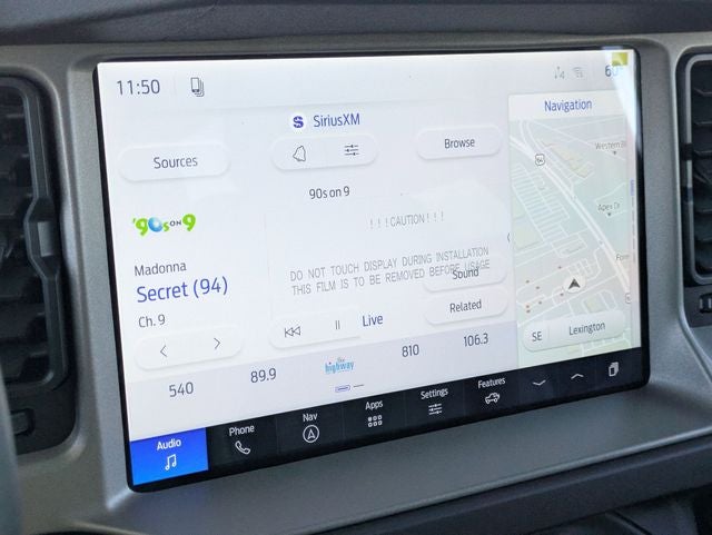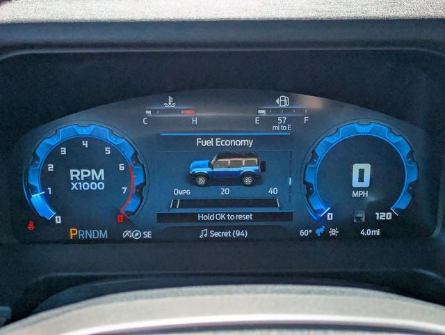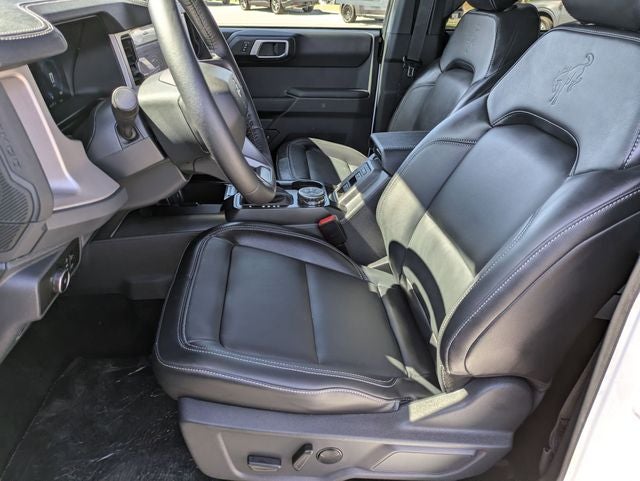 This Bronco Outer Banks Advanced is nicely equipped with Equipment Group 314A Lux Package (18 Bright Machined Aluminum Wheels, 3.73 Axle Ratio, 360-Degree Camera, Adaptive Cruise Control, Evasive Steering Assist, Front Parking Sensors, Heated Leather-Trimmed/Vinyl Bucket Seats, Information on Demand Panel, and Sideview Mirrors), Ford Connectivity Package (1-Year Included), 4-Wheel Disc Brakes, 7 Speakers, ABS brakes, Air Conditioning, Alloy wheels, AM/FM radio: SiriusXM with 360L, AM/FM Stereo, Auto High-beam Headlights, Auto-dimming Rear-View mirror, Automatic temperature control, Brake assist, Compass, Connected Navigation, Delay-off headlights, Driver door bin, Driver vanity mirror, Dual front impact airbags, Dual front side impact airbags, Electronic Stability Control, Emergency communication system: 911 Assist, Exterior Parking Camera Rear, Front anti-roll bar, Front Bucket Seats, Front Center Armrest, Front dual zone A/C, Front fog lights, Front License Plate Bracket, Front reading lights, Front wheel independent suspension, Fully automatic headlights, Hard Top Sound Deadening Headliner, Heated door mirrors, Heated front seats, Heated steering wheel, Illuminated entry, Integrated roll-over protection, Leather Shift Knob, Low tire pressure warning, Navigation system: Connected Navigation, Occupant sensing airbag, Outside temperature display, Overhead airbag, Overhead console, Panic alarm, Passenger door bin, Passenger vanity mirror, Power door mirrors, Power driver seat, Power passenger seat, Power steering, Power windows, Radio data system, Rear seat center armrest, Rear-Window Defroster and Washer, Remote keyless entry, Security system, Shadow Black-Painted Hard Top, SiriusXM with 360L, Speed control, Split folding rear seat, Steering wheel mounted audio controls, SYNC 4, Tachometer, Telescoping steering wheel, Tilt steering wheel, Traction control, Trip computer, Variably intermittent wipers, and Voltmeter.