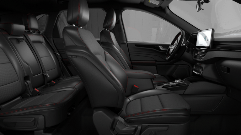 This Escape ST-Line is nicely equipped with Equipment Group 300A (3.81 Axle Ratio, 4-Way Manual Front Passenger Seat, 8-Way Power Driver Seat, Ford App, Partial Vinyl/Cloth Front Sport Contour Bucket Seats with Red Stitching, Radio: AM/FM Stereo with SiriusXM 360L, SYNC 4, and Wheels: 18 Rock Metallic Painted Aluminum), Tech Pack #1 (Adaptive Cruise Control with Stop-and-Go, Connected Navigation (1-Year Included), Digital Rear View Camera, Evasive Steering Assist, Ford Co-Pilot360 Assist+, Intersection Assist, Predictive Speed Assist, Rear Parking Sensor, and SYNC 4 with Enhanced Voice Recognition), 4-Wheel Disc Brakes, 6 Speakers, ABS brakes, Air Conditioning, Alloy wheels, AM/FM radio: SiriusXM 360L, Auto High-beam Headlights, Automatic temperature control, Brake assist, Bumpers: body-color, Compass, Delay-off headlights, Driver door bin, Driver vanity mirror, Dual front impact airbags, Dual front side impact airbags, Electronic Stability Control, Emergency communication system: SYNC 4 911 Assist, Four wheel independent suspension, Front anti-roll bar, Front Bucket Seats, Front Center Armrest, Front dual zone A/C, Front License Plate Bracket, Front reading lights, Fully automatic headlights, Heated steering wheel, Illuminated entry, Knee airbag, Low tire pressure warning, Occupant sensing airbag, Outside temperature display, Overhead airbag, Overhead console, Panic alarm, Passenger door bin, Passenger vanity mirror, Power door mirrors, Power driver seat, Power Liftgate, Power steering, Power windows, Radio data system, Rear anti-roll bar, Rear reading lights, Rear seat center armrest, Rear window defroster, Rear window wiper, Remote keyless entry, Speed control, Speed-sensing steering, Speed-Sensitive Wipers, Split folding rear seat, Spoiler, Sport steering wheel, Steering wheel mounted audio controls, Tachometer, Telescoping steering wheel, Tilt steering wheel, Traction control, Trip computer, and Variably intermittent wipers.