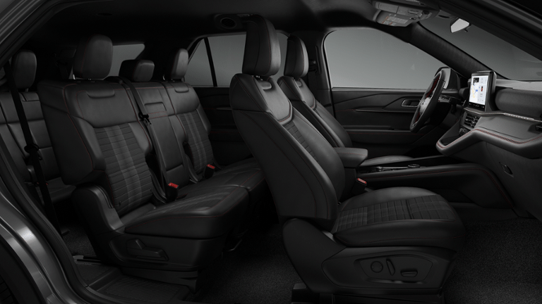 This Explorer ST-Line is nicely equipped with Ford Connectivity Package (one-Time Purchase - 7 Years), ST-Line Street Pack (Performance Brakes, Red Painted Performance Front and Rear Brake Calipers, and Wheels: 21 Magnetite-Painted Aluminum), 4WD, 10 Speakers, 3rd row seats: bench, 4-Wheel Disc Brakes, ABS brakes, Air Conditioning, Alloy wheels, AM/FM radio: SiriusXM with 360L, Apple CarPlay/Android Auto, Auto High-beam Headlights, Automatic temperature control, BlueCruise (equipment + 1-Year + 90-Day Plan), Brake assist, Bumpers: body-color, Compass, Delay-off headlights, Driver door bin, Driver vanity mirror, Dual front impact airbags, Dual front side impact airbags, Electronic Stability Control, Emergency communication system: 911 Assist, Exterior Parking Camera Rear, Four wheel independent suspension, Front anti-roll bar, Front Bucket Seats, Front Center Armrest, Front dual zone A/C, Front fog lights, Front reading lights, Fully automatic headlights, Garage door transmitter, Heated door mirrors, Heated front seats, Heated steering wheel, Heated Unique Cloth Captain's Chairs, Illuminated entry, Knee airbag, Leather steering wheel, Low tire pressure warning, Navigation System, New Feature 2, New Feature 3, New Feature 4, New Feature 5, New Feature 6, Occupant sensing airbag, Outside temperature display, Overhead airbag, Overhead console, Panic alarm, Passenger door bin, Passenger vanity mirror, Power door mirrors, Power driver seat, Power Liftgate, Power passenger seat, Power steering, Power windows, Radio: B&O Sound System by Bang and Olufsen, Rear air conditioning, Rear anti-roll bar, Rear reading lights, Rear window defroster, Rear window wiper, Remote keyless entry, Security system, Speed control, Speed-sensing steering, Speed-Sensitive Wipers, Split folding rear seat, Spoiler, Steering wheel mounted audio controls, Tachometer, Telescoping steering wheel, Tilt steering wheel, Traction control, Trip computer, Variably intermittent wipers, and Wheels: 20 Ebony-Painted Machined Aluminum Price does not include dealer-installed equipment. Price(s) include(s) all costs to be paid by a consumer, except for licensing costs, registration fees, $799 administrative fees, taxes, and $798 Triton VIP Protection Plan.