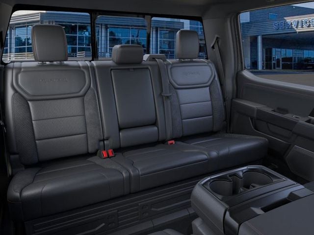 This F-150 Raptor is nicely equipped with Ford Connectivity Package (1-Year Included), Ford Connectivity Package (one-Time Purchase - 7 Years), Internet access capable: 5G Modem - Ford Connectivity Package, 4WD, 14 Speakers, 17 Cast Aluminum Wheels, 4-Wheel Disc Brakes, ABS brakes, Adjustable pedals, Air Conditioning, Alloy wheels, AM/FM radio: SiriusXM with 360L, Auto High-beam Headlights, Auto tilt-away steering wheel, Auto-dimming door mirrors, Auto-dimming Rear-View mirror, Automatic temperature control, Brake assist, Bumpers: body-color, Compass, Delay-off headlights, Driver door bin, Driver vanity mirror, Driver's Side SecuriCode Keyless-Entry Keypad, Dual front impact airbags, Dual front side impact airbags, Electronic Locking with 4.10 Axle Ratio, Electronic Stability Control, Emergency communication system: SYNC 4 911 Assist, Front anti-roll bar, Front Bucket Seats, Front Center Armrest, Front dual zone A/C, Front fog lights, Front reading lights, Front wheel independent suspension, Fully automatic headlights, Garage door transmitter, Heated door mirrors, Heated front seats, Heated rear seats, Heated steering wheel, Illuminated entry, Lane Departure Warning System, Leather steering wheel, Leather Trimmed Seats, Low tire pressure warning, Memory seat, Navigation system: Connected Navigation, New Feature 2, New Feature 3, New Feature 4, New Feature 5, New Feature 6, Occupant sensing airbag, Outside temperature display, Overhead airbag, Overhead console, Panic alarm, Passenger door bin, Passenger vanity mirror, Pedal memory, Power door mirrors, Power driver seat, Power passenger seat, Power steering, Power windows, Radio data system, Radio: B&O Unleashed Sound System by Bang & Olufsen, Rain sensing wipers, Rear reading lights, Rear step bumper, Rear window defroster, Remote keyless entry, Security system, Speed control, Speed-sensing steering, Split folding rear seat, Steering wheel memory, Steering wheel mounted audio controls, SYNC 4 with Enhanced Voice Recognition, Tachometer, Telescoping steering wheel, Tilt steering wheel, Tough Bed Spray-in Bedliner, Traction control, Trip computer, Turn signal indicator mirrors, Twin Panel Moonroof, Variably intermittent wipers, and Ventilated front seats Price does not include dealer-installed equipment. Price(s) include(s) all costs to be paid by a consumer, except for licensing costs, registration fees, $799 administrative fees, taxes, and $798 Triton VIP Protection Plan.