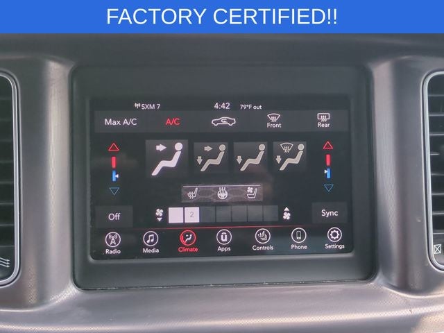 As a Dodge Certified Pre-Owned vehicle, this Charger has undergone a rigorous 125-point inspection and reconditioning process using authentic Mopar parts. It comes with a 3-month/3,000-mile limited warranty, roadside assistance, and a $100 deductible, giving you the peace of mind you deserve.