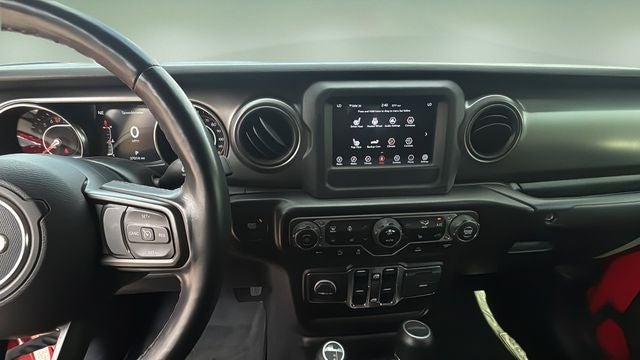 Packed with premium features, the Gladiator Willys offers the perfect blend of capability and convenience. Enjoy the technology of the Uconnect 4 system with a 7-inch touchscreen display, Apple CarPlay, and Android Auto integration. Stay comfortable with automatic climate control, heated front seats, and a heated steering wheel. And with the Black Freedom 3-piece hard top, you can easily convert this Jeep to open-air driving for an unmatched sense of freedom.