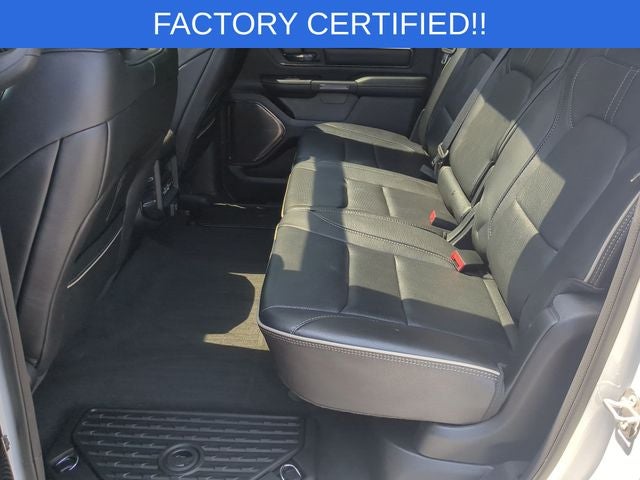 FACTORY CERTIFIED **, CARFAX CERTIFIED **, EXTENDED SERVICE CONTRACT AVAILABLE **, ONE OWNER **, RECENT LOCAL TRADE **, ALL BOOKS AND KEYS, 10 Speakers, 48V Belt Starter Generator, Accent Color Door Handles, Accent Color Premium Power Mirrors, Active Noise Control System, Adaptive Cruise Control w/Stop & Go, Adjustable pedals, AM/FM radio: SiriusXM with 360L, Anti-Spin Differential Rear Axle, Apple CarPlay/Android Auto, Audio memory, Auto High-beam Headlights, Auto-dimming door mirrors, Auto-Dimming Exterior Driver Mirror, Auto-dimming Rear-View mirror, Auto-leveling suspension, Automatic temperature control, Bed Utility Group, Black Day Light Opening Moldings, Black Exterior Truck Badging, Black Grille Surround Texture 7 Black, Black Headlamp Bezels, Black Painted Exterior Mirrors Caps, Body Color Front Bumper, Body Color Rear Bumper w/Step Pads, Brake assist, Convex Wide-Angle Exterior Mirror Insert, Delay-off headlights, Digital Rearview Mirror, Dome Dual LED Reading Lamp, Driver Seat Memory, Dual Exhaust w/Black Tips, Dual Rear Exhaust w/Bright Tips, Dual-Pane Panoramic Sunroof, Electronic Stability Control, Exterior Mirrors Courtesy Lamps, Exterior Mirrors w/Heating Element, Exterior Mirrors w/Memory, Exterior Mirrors w/Supplemental Signals, Front dual zone A/C, Front fog lights, Fully automatic headlights, harman/kardon 19 Speaker Premium Sound, Heads-Up Display, Heated door mirrors, Heated Front Seats, Heated rear seats, Heated Second Row Seats, Heated Steering Wheel, Heavy-Duty Engine Cooling, Lane Keep Assist, LED CHMSL Lamp, LED Dome/Reading Lamp, Limited Level 1 Equipment Group, Memory seat, MOPAR 4 Adjustable Cargo Tie-Down Hooks, MOPAR Spray In Bedliner, Multi-Function Tailgate, Navigation System, Night Edition, Panic alarm, Parallel & Perp Park Assist w/Stop, ParkSense Front/Rear Park Assist w/Stop, ParkView Rear Back-Up Camera, Pedal memory, Pedestrian Emergency Braking, Pick-Up Box Lighting, Power 4-Way Driver Lumbar Adjust, Power 4-Way Passenger Lumbar Adjust, Power 8-Way Driver & Passenger Seats, Power passenger seat, Power Running Boards, Power-Folding Mirrors, Premium Leather Trimmed Bucket Seats, Quick Order Package 27M Limited, Radio data system, Radio: Uconnect 5 Nav w/12.0 Display, RAM Grille Badge - Black, Rear 60/40 Folding Split Recline Seat, Rear window defroster, Remote keyless entry, Security system, Split folding rear seat, Sport Performance Hood, Steering wheel mounted audio controls, Surround View Camera System, Tailgate Ajar Warning Lamp, Telescoping steering wheel, Tilt steering wheel, Tow Hooks, Traction control, Trailer Brake Control, Tri-Fold Tonneau Cover, Ventilated Front Seats, Ventilated Rear Seats, Wheels: 22 x 9 Black Aluminum, Wireless Charging Pad.