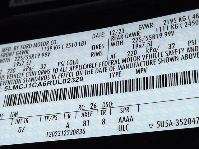 This Corsair Premiere is nicely equipped with Equipment Group 101A (18 Bright Machined Aluminum Wheels, 2 Additional USB Ports in Rear of Center Console, 60/40 EasyFold Rear Seat w/Power Seatback Release, Frameless Auto Dimming Rearview Mirror, Hands-Free Liftgate, Heated Sideview Mirrors, Heated Steering Wheel, Heated/Ventilated Driver & Front Passenger Seats, Micro-Perf Lincoln Soft Touch Captain's Chairs, Phone As A Key (PAAK), Power Tilt/Telescoping Steering Column w/Memory, Rain Sensing Wipers, Universal Garage Door Opener, Windshield Wiper De-Icer, and Wireless Charging Pad), 19 Bright Machined Aluminum Wheels, 3.81 Axle Ratio, 360-Degree Camera, 4-Wheel Disc Brakes, 9 Speakers, ABS brakes, Air Conditioning, Alexa Built-In, Alloy wheels, AM/FM radio: SiriusXM, Apple CarPlay/Android Auto, Auto High-beam Headlights, Auto-dimming Rear-View mirror, Automatic temperature control, Brake assist, Bumpers: body-color, Compass, Delay-off headlights, Driver door bin, Driver vanity mirror, Dual front impact airbags, Dual front side impact airbags, Electronic Stability Control, Emergency communication system: 911 Assist, Four wheel independent suspension, Front anti-roll bar, Front Bucket Seats, Front Center Armrest, Front dual zone A/C, Front reading lights, Front/Side/Rear Parking Sensors, Fully automatic headlights, Heated door mirrors, Heated front seats, Illuminated entry, Knee airbag, Lane Departure Warning System, Leather steering wheel, Lincoln Soft Touch Heated Front Captain's Chairs, Low tire pressure warning, Memory seat, Navigation system: Connected Navigation (3-year trial), New Feature 2, New Feature 3, New Feature 4, New Feature 5, New Feature 6, Occupant sensing airbag, Outside temperature display, Overhead airbag, Overhead console, Panic alarm, Passenger door bin, Passenger vanity mirror, Power door mirrors, Power driver seat, Power Liftgate, Power passenger seat, Power steering, Power windows, Radio data system, Radio: Lincoln Premium Audio System w/MP3, Rear anti-roll bar, Rear Parking Sensors, Rear reading lights, Rear seat center armrest, Rear window defroster, Rear window wiper, Remote keyless entry, Reverse Brake Assist, Security system, SiriusXM Radio, Speed control, Speed-sensing steering, Speed-Sensitive Wipers, Split folding rear seat, Spoiler, Steering wheel mounted A/C controls, Steering wheel mounted audio controls, SYNC 4 Communications & Entertainment System, Tachometer, Telescoping steering wheel, Tilt steering wheel, Traction control, Trip computer, Variably intermittent wipers, and Wheels: 18 Warm Painted Alloy Price does not include dealer-installed equipment. Price(s) include(s) all costs to be paid by a consumer, except for licensing costs, registration fees, $799 administrative fees, taxes, and $798 Triton VIP Protection Plan.