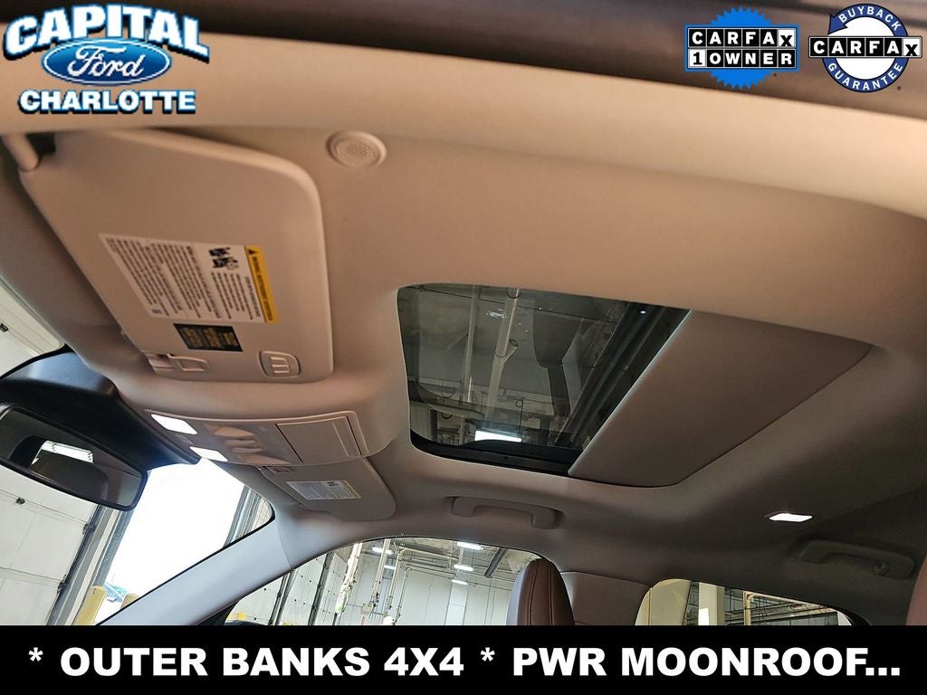 **CLEAN CARFAX**, **ONE OWNER**, **TECHNOLOGY PKG**, **MOONROOF/SUNROOF**, **DUAL ZONE TEMP CONTROL**, **HEATED FRT SEATS**, **HEATED STEERING WHEEL**, **DUAL POWER SEATS**, **SYNC4**, **FORDPASS CONNECT 4 G WIFI MODE**, **SIRIUS XM SATELLITE RADIO**, **BACKUP CAMERA**, **INTELLIGENT ACCESS w. PUSH BUTTON START, **REMOTE START SYSTEM**, **TERRAIN MANAGEMENT SYS-5**, **TRITON PROTECT CAR CARE SYSTEM**, **TRITON PROTECT SILENT SECURITY THEFT DETERRENT SYSTEM**, 360-Degree Camera w/Trail & Split View, 6 Speakers, AM/FM radio: SiriusXM, Auto High-beam Headlights, B&O Sound System by Bang & Olufsen, Connected Navigation, Delay-off headlights, Emergency communication system: SYNC 4 911 Assist, Equipment Group 300A, Front fog lights, Front Parking Sensors, Fully automatic headlights, HD Radio, Low Tire Pressure Warning, Memory seat, Outer Banks Tech Package+, Rain sensing wipers, Rear Parking Sensors, Rear Window Wiper, Speed Control, Speed-Sensitive Wipers, Telescoping Steering Wheel, Tilt Steering Wheel, Variably intermittent wipers.