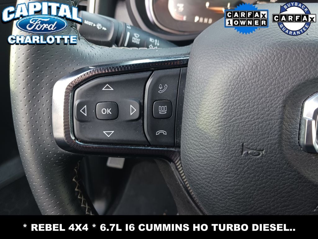 **CLEAN CARFAX**, **ONE OWNER**, **TRITON PROTECT CAR CARE SYSTEM**, **TRITON PROTECT SILENT SECURITY THEFT DETERRENT SYSTEM**, **FULLY INSPECTED BY CERTIFIED TECHNICIANS**, 6 Speakers, AM/FM radio: SiriusXM with 360L, Apple CarPlay/Android Auto, Block heater, Cloth Heated Power Bench Seat, Delay-off headlights, Front Dual Zone A/C, Front fog lights, Fully automatic headlights, Heated Front Seats, Heated Steering Wheel, Integrated Voice Command with Bluetooth®, Low Tire Pressure Warning, Navigation System, ParkView Rear Back-Up Camera, Power Adjust 8-Way Driver Seat, Power driver seat, Quick Order Package 24R Rebel, Radio: Uconnect 5 Navigation with 12.0 Display, SiriusXM with 360L, Speed Control, Tilt Steering Wheel.